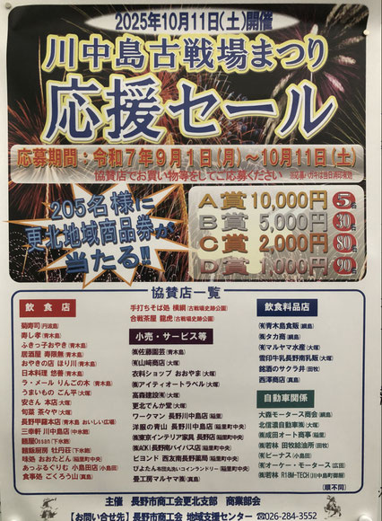 古戦場まつりは10月11日(土)川中島古戦場史跡公園にて行われます。