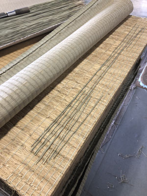 低い所には適切な長さにカットしたイ草を並べて調整をします。